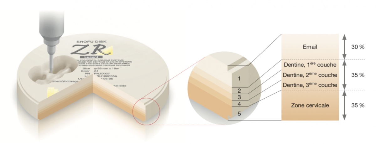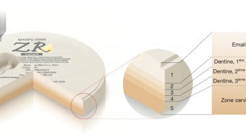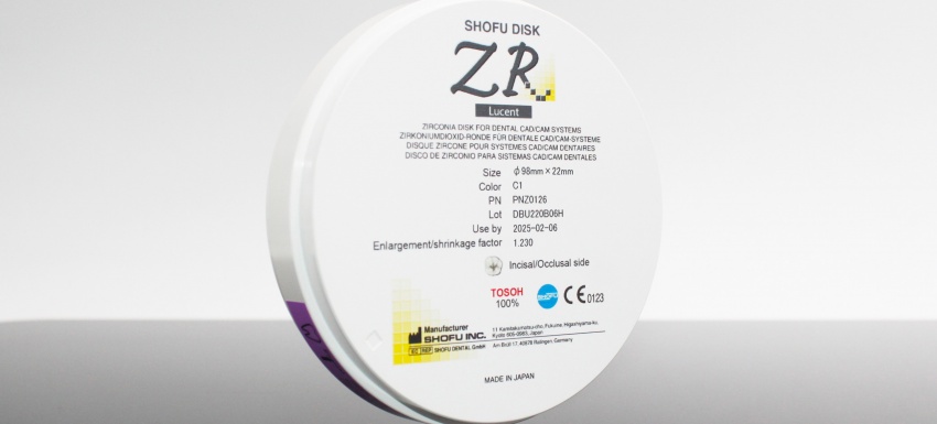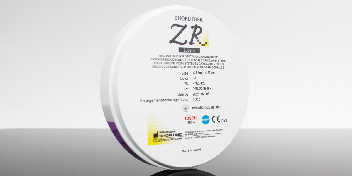 Le disque SHOFU Disk ZR Lucent est en zircone (5Y-PSZ) hautement translucide pour la fabrication de restaurations esthétiques antérieures et postérieures.