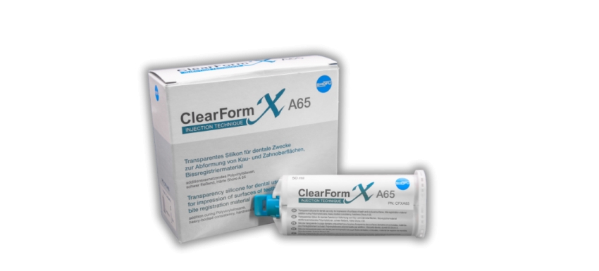 Spécialement conçu pour la fabrication de clés silicone destinées à la technique du composite injecté, ClearForm XA65 se distingue par sa transparence totale, qui permet un contrôle visuel optimal lors des différentes étapes cliniques et de laboratoire.