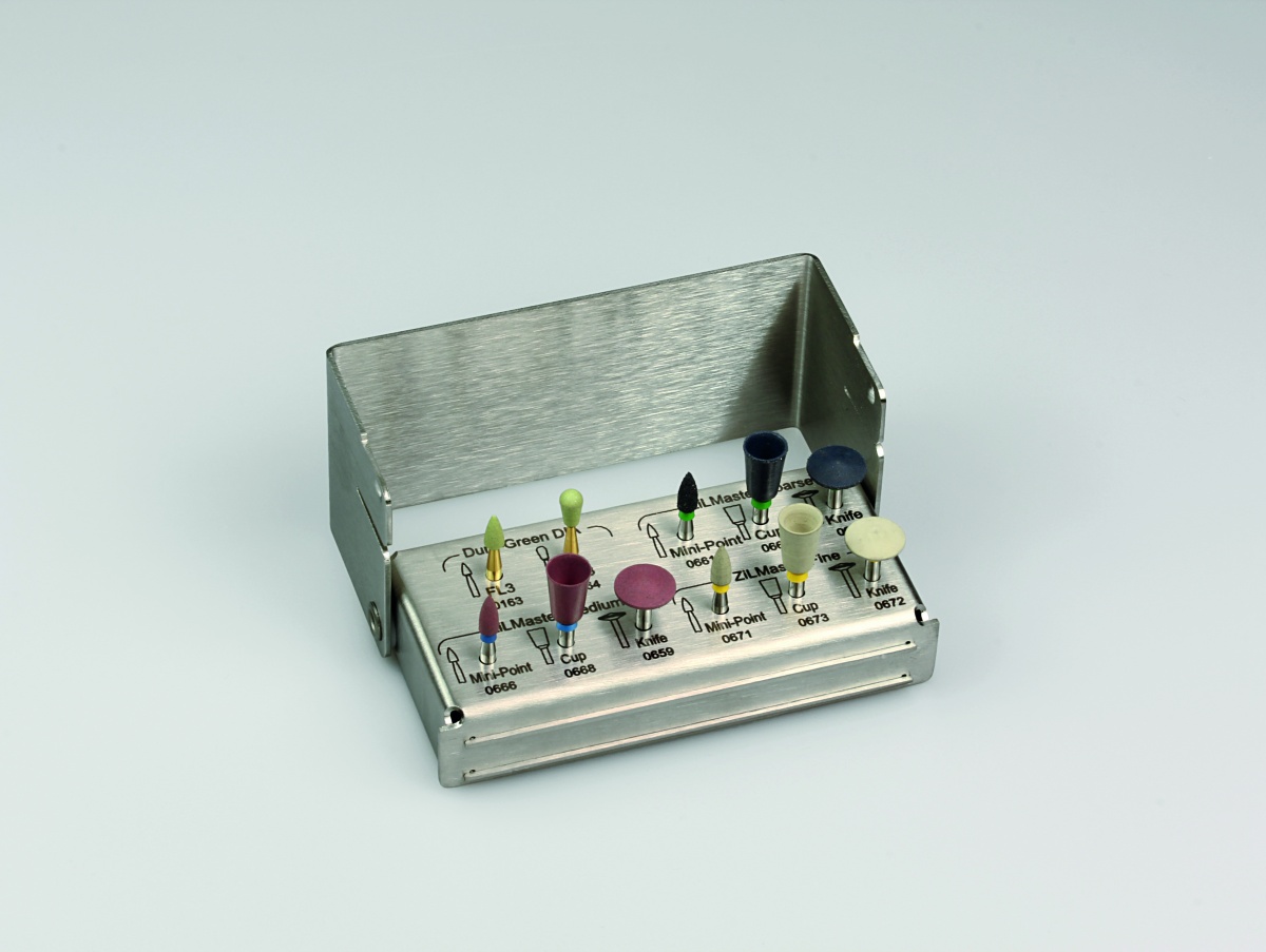 Ce système de polissage imprégné de diamant travaille en trois étapes. Il lisse les restaurations, supprime les irrégularités dues au modelage et finit par un lustrage soigné. ZiLMaster est disponible en diverses formes et tiges pour utilisation intra et extra-orale.